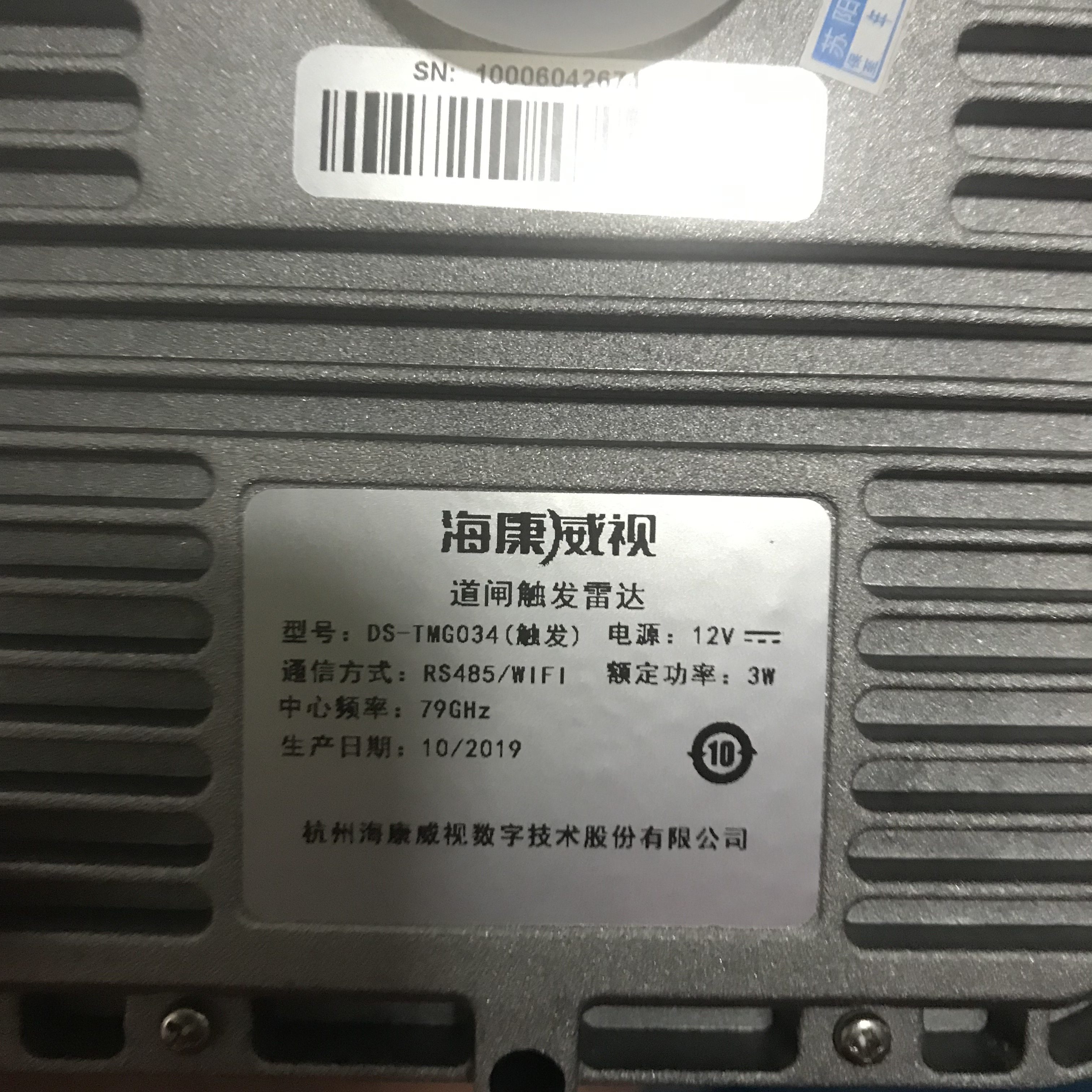 推荐理由:海康威视DS-TMG034道闸触发雷达/防砸雷达安装支架79GHz MMIC技术