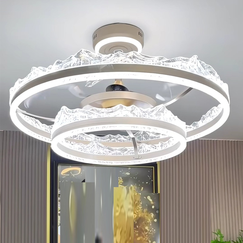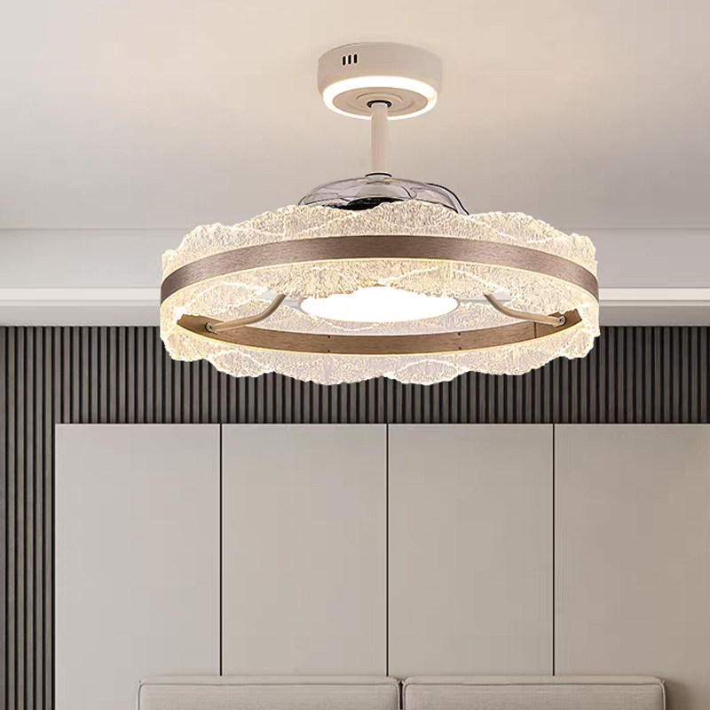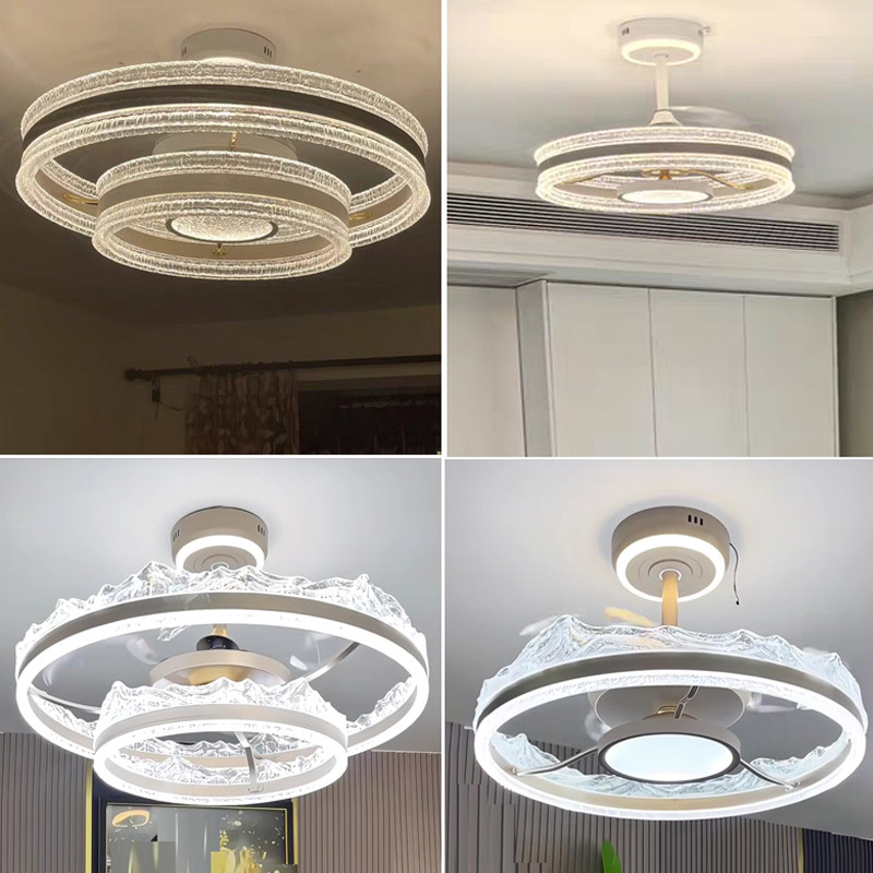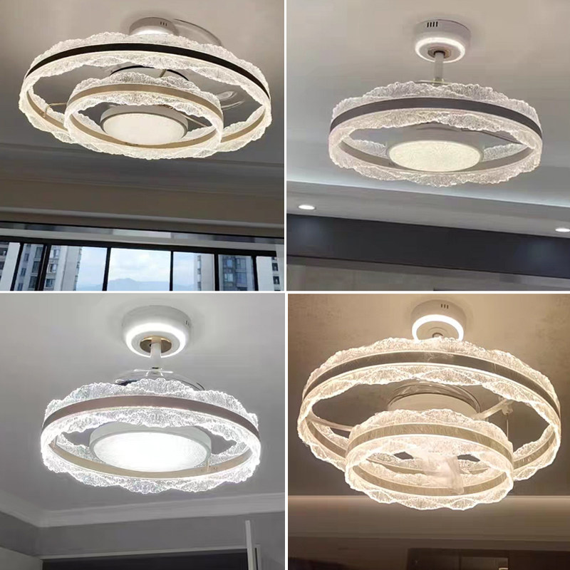 客厅水晶冰裂纹隐形风扇灯吊扇灯家用一体房间餐厅卧室简约轻奢