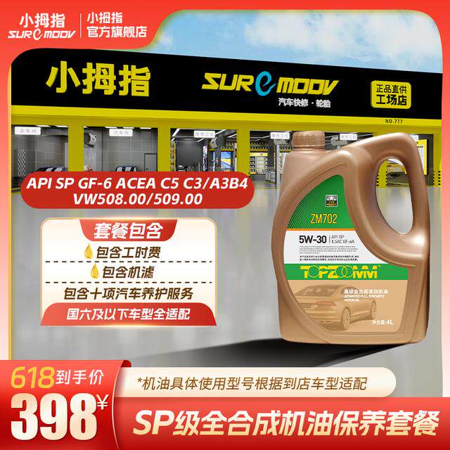 小拇指【398机油保养套餐】高级全合成机油车型全适配包工时包机