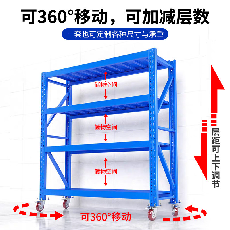 推荐理由:重型可移动式带轮货架多层工厂车间仓库储物承重万向轮置物铁架子