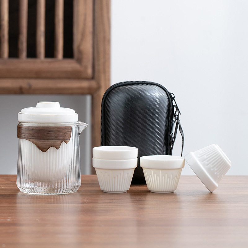 千里江山羊脂玉玻璃陶瓷茶具套装快客杯一壶四杯旅游泡茶轻奢复古