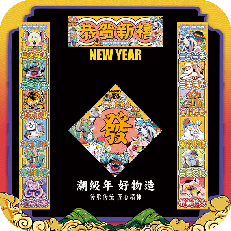 2026新款马年十二生肖春节对联新年福字门贴大门过年国潮创意春联