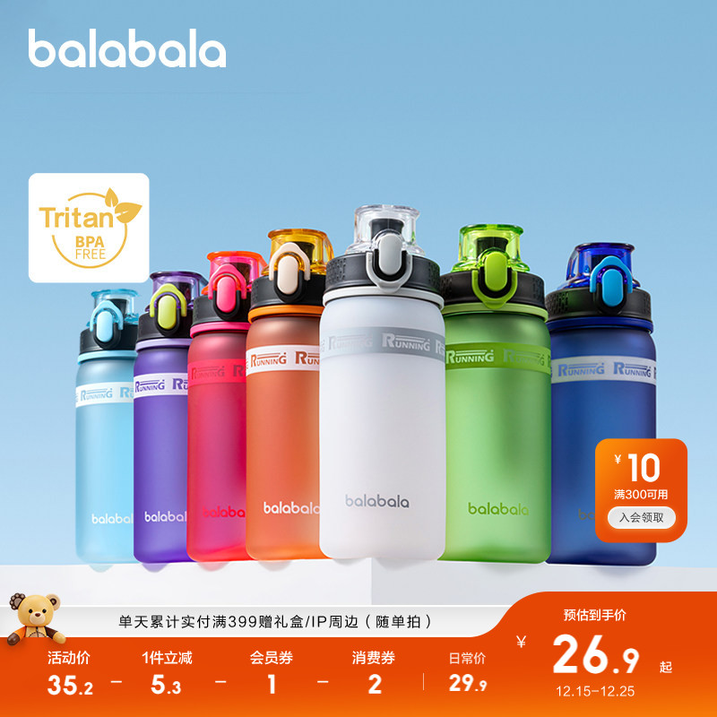 巴拉巴拉儿童水杯冷水杯大容量triatn便携运动直饮杯中大童时尚潮