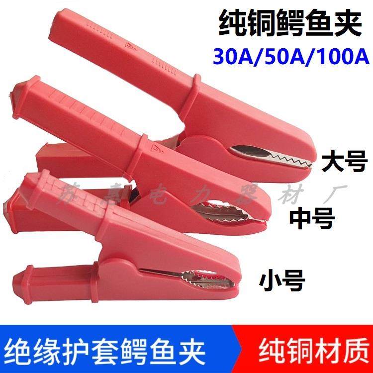 纯铜大号鳄鱼夹中小号护套夹30/50A100A大电流全绝缘高压测试夹子