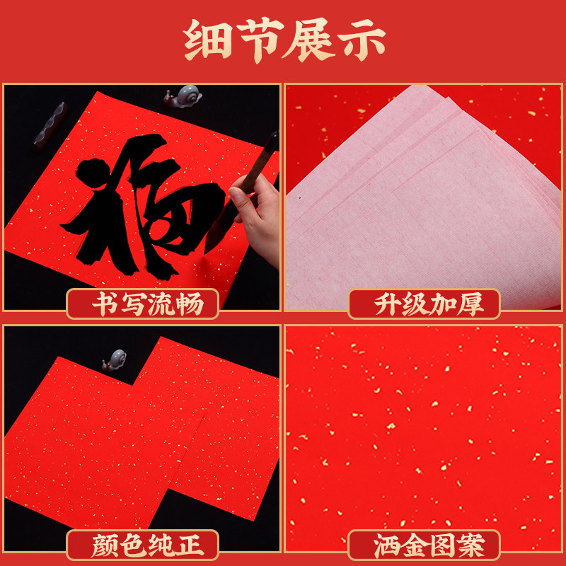 推荐理由:万年红福字纸空白对联专用纸洒金春联手写纸2026新款自写红色斗方宣纸过年写福字的红纸高档春节毛笔书法用纸
