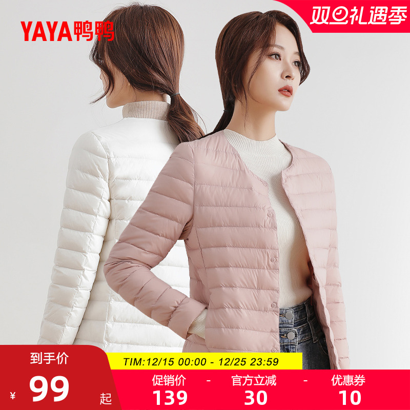 佟丽娅明星同款鸭鸭轻薄羽绒服短款女2025冬新款修身无领内胆保暖