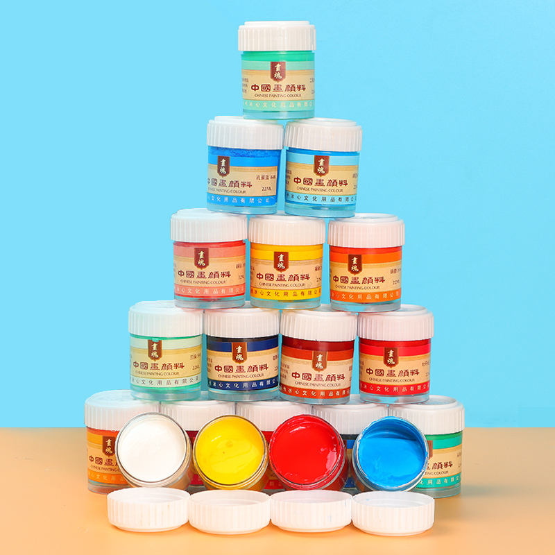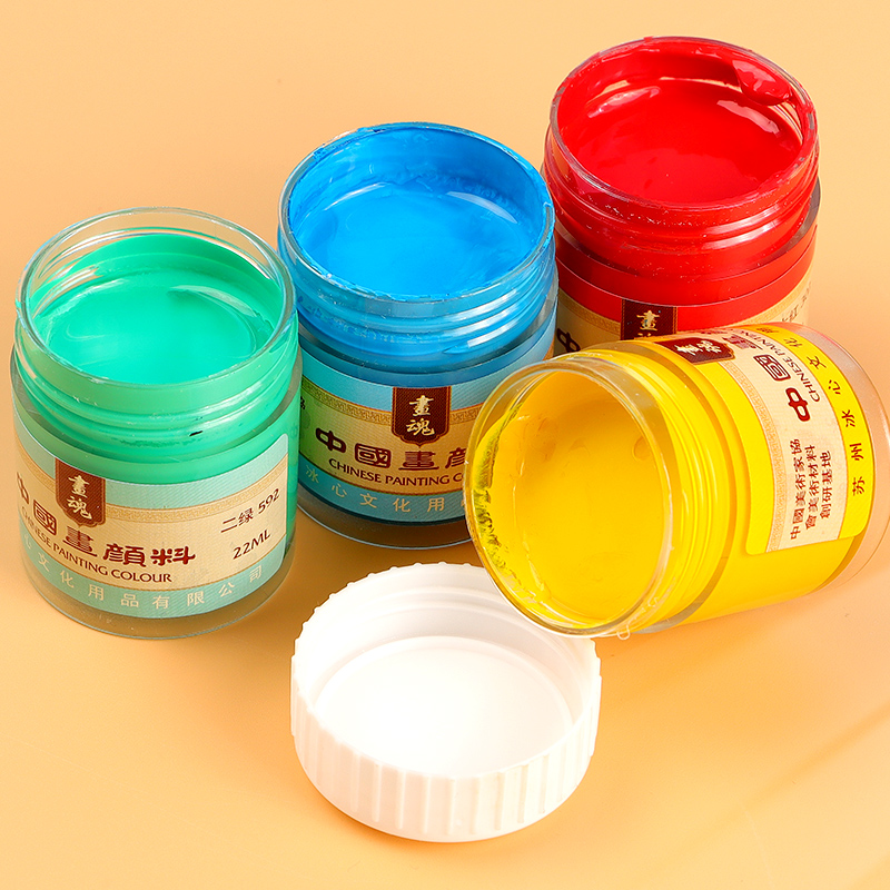 中国画颜料瓶装画魂12色套装组合28色学生用专业美术生专用绘画画彩绘儿童工具初学者练习水溶大容量矿物质