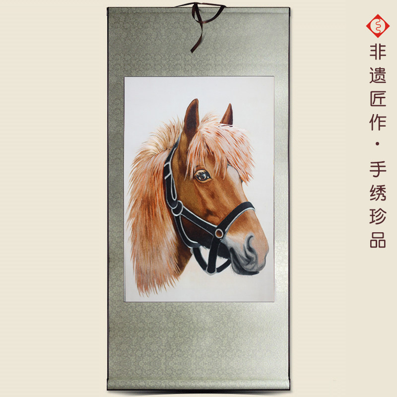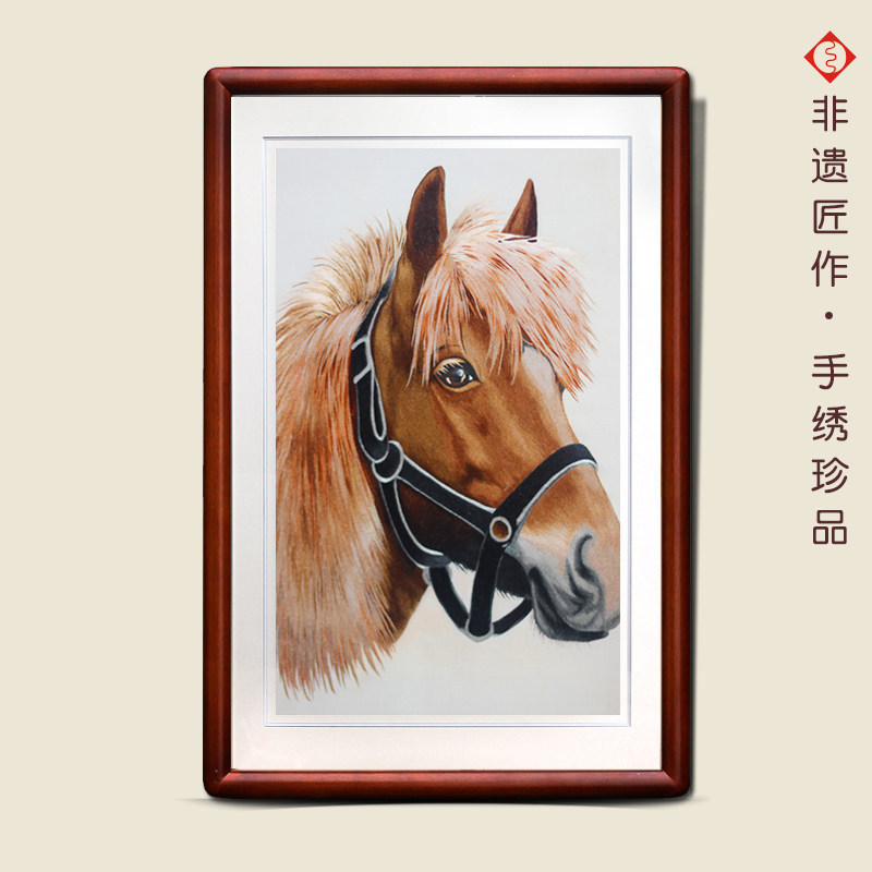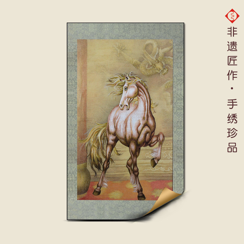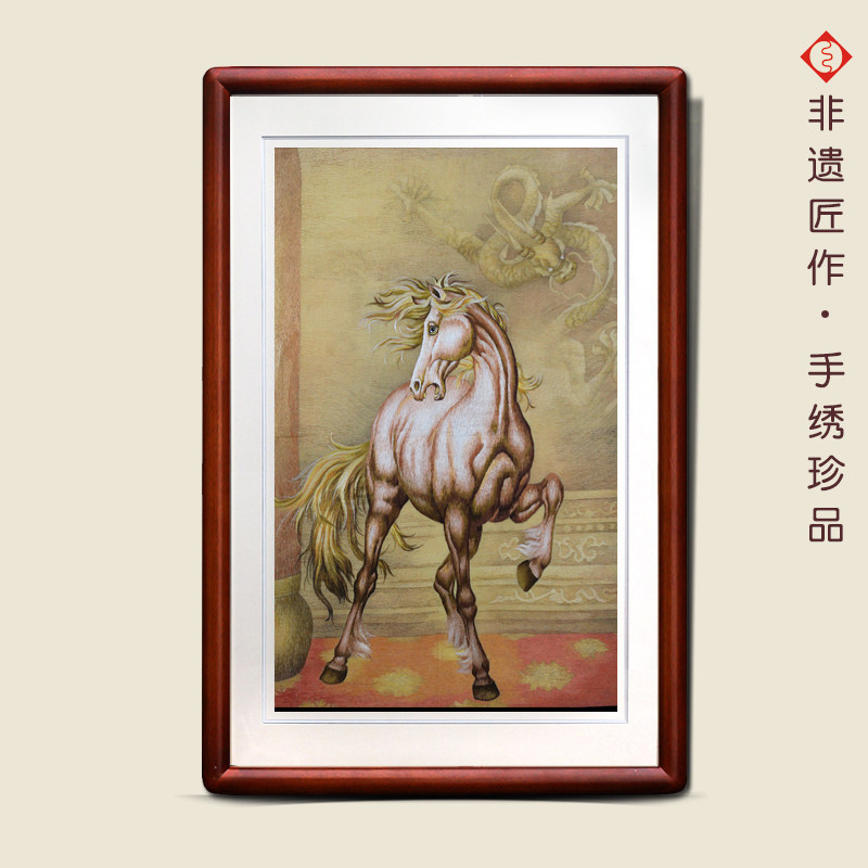 有福湘绣苏绣马到成功龙马精神玄关别墅客厅装饰刺绣战马名画定制