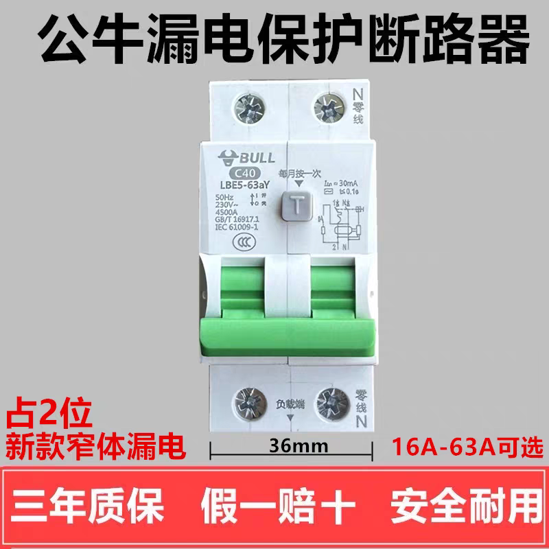 推荐理由:公牛新款2p漏电保护器窄体 零火双断 空气开关断路器主闸分闸1pn
