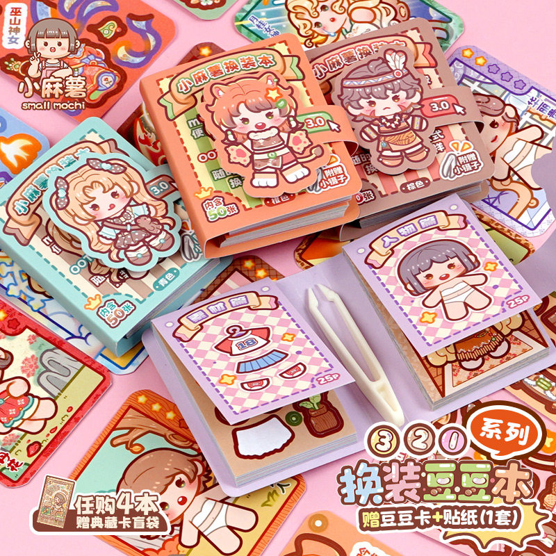 duga多加小麻薯换装豆豆本贴纸书女孩儿童装饰小图案颜值高换装书可爱卡通少女心手工diy玩具迷你换装贴纸画