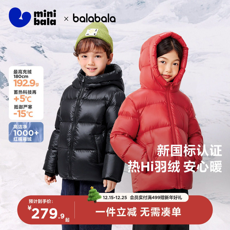 【热Hi】迷你巴拉巴拉男女童红色羽绒服冬季保暖亲子加厚羽绒外套