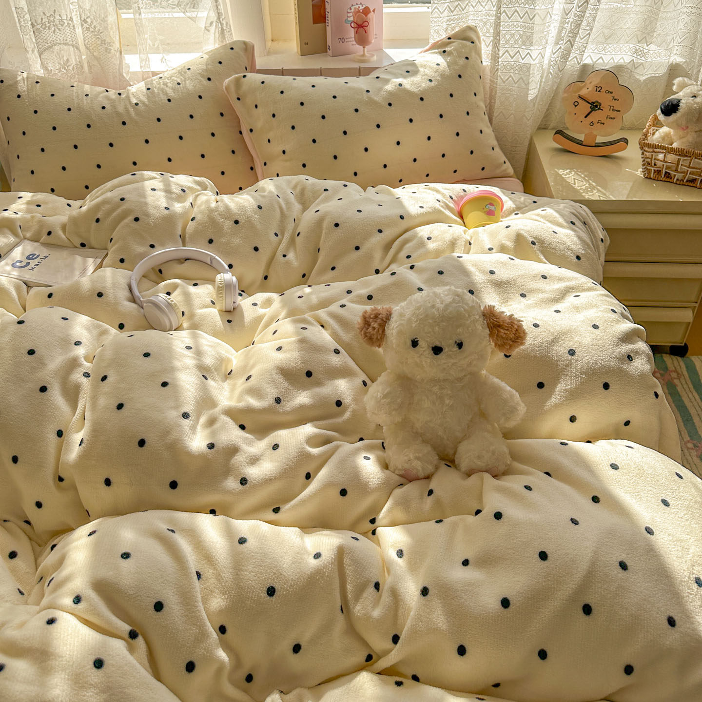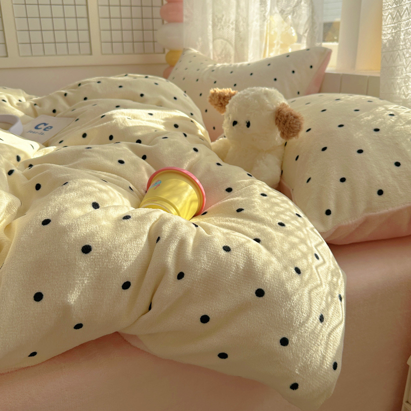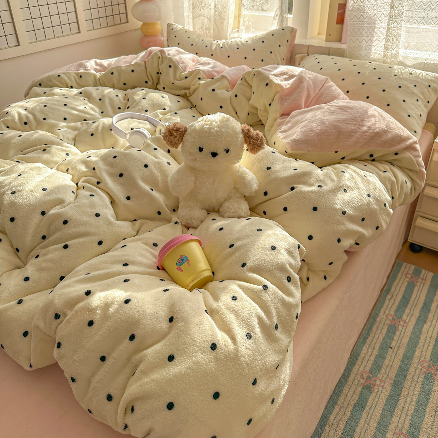 奶油风波点牛奶绒四件套双面珊瑚绒被套加厚保暖床品床单人三件套