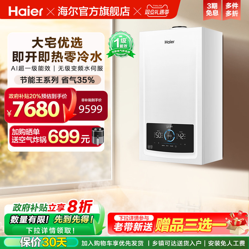 海尔燃气热水器采暖壁挂炉天然气家用超一级零冷水锅炉JN7PLUS