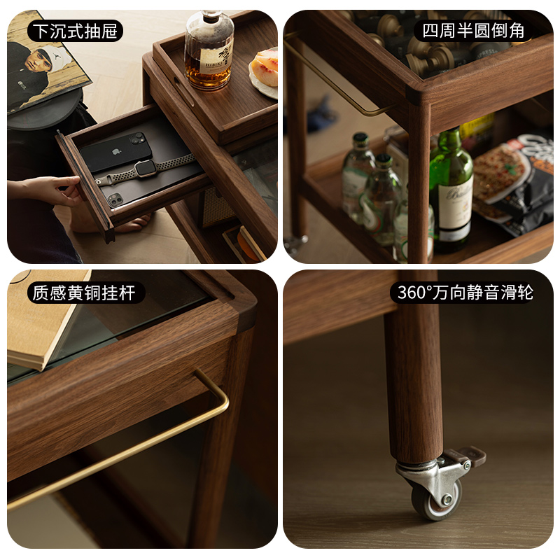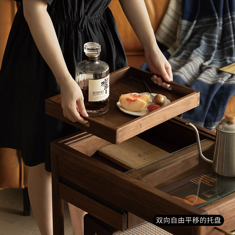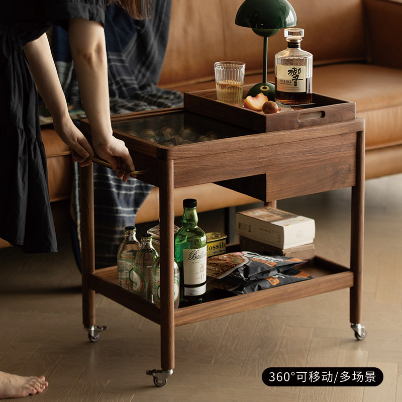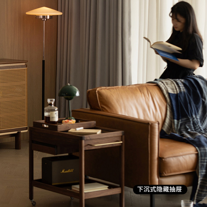 小推车置物架可移动沙发边桌小茶几黑胡桃木角几客厅实木边几北欧