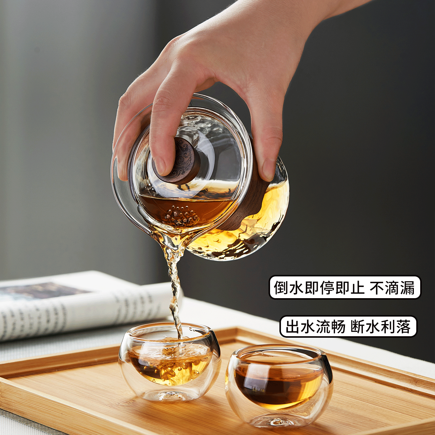 绿昌明防烫玻璃盖碗三才茶碗茶杯套装茶具2025新款泡茶过滤手抓壶