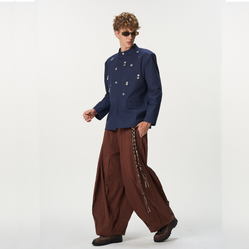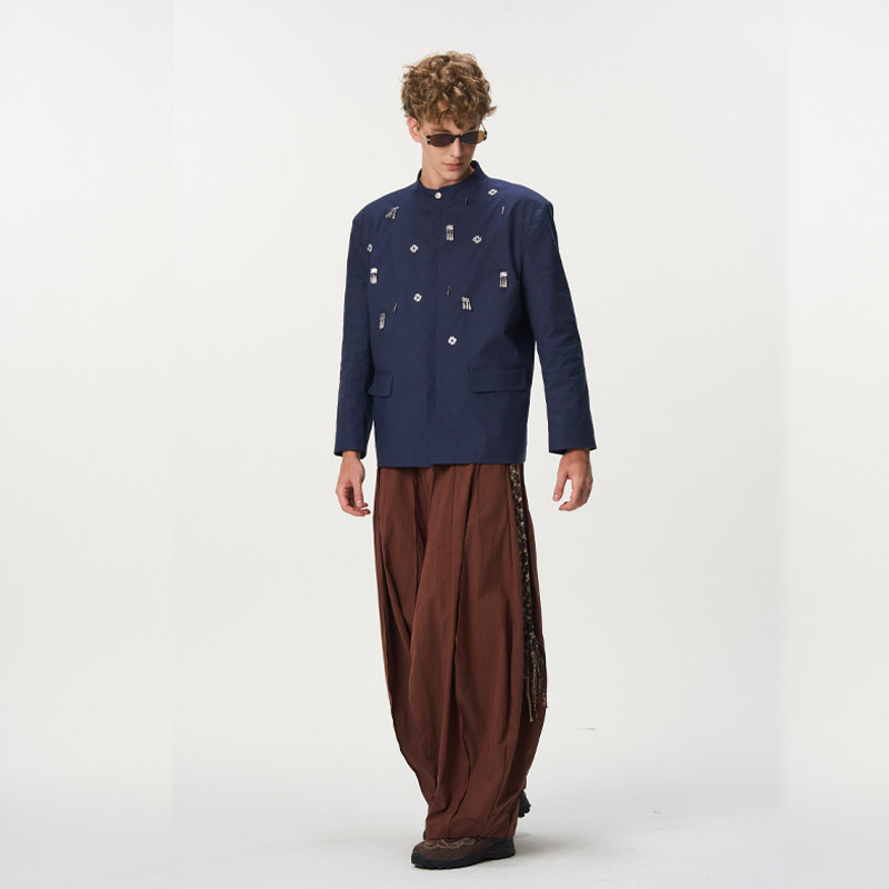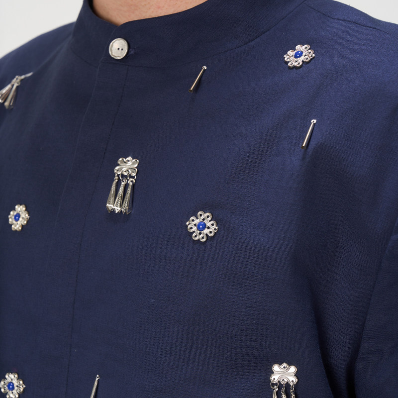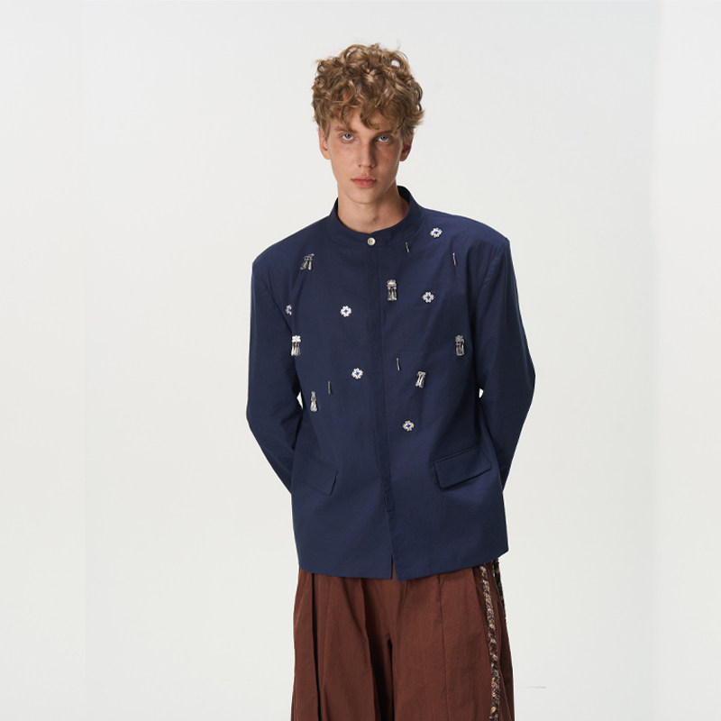 推荐理由:CNEW2025AW苗疆星穹 藏蓝纯手工缝苗族银饰银扣中山装 西装