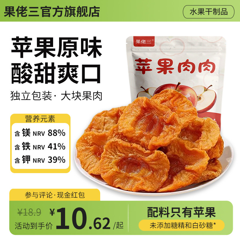 果佬三烟台鲜果厚切苹果干125g泡水果干零食无添加糖精食品独立装