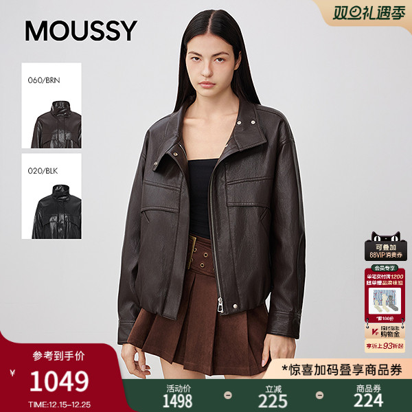 MOUSSY 2025秋季新品潮酷时尚简约拉链皮衣外套女028IAC30-1069