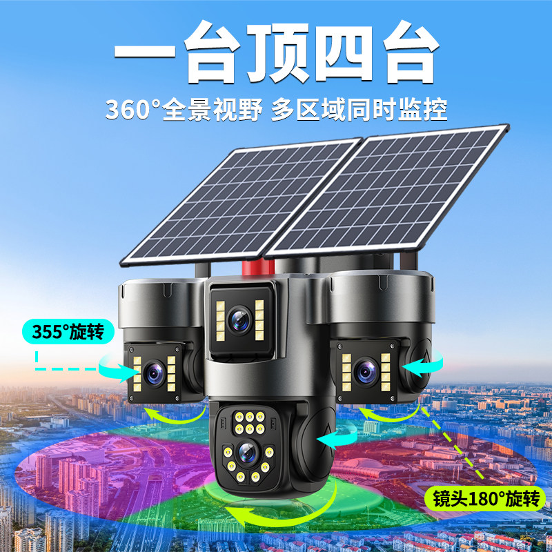 太阳能摄像头监控器360度无死角室外无电无网高清夜视全景摄影头