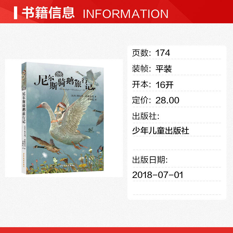 尼尔斯骑鹅旅行记 (瑞典)塞尔玛·拉格洛芙 著 李俍民 译 少儿艺术/手工贴纸书/涂色书少儿 新华书店正版图书籍 少年儿童出版社