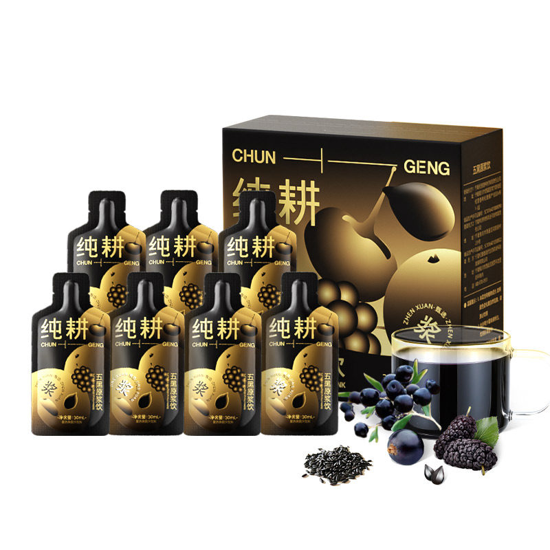 推荐理由:纯耕五黑原浆300ml/盒无蔗糖黑枸杞桑葚黑加仑黑芝麻黑米滋补食品