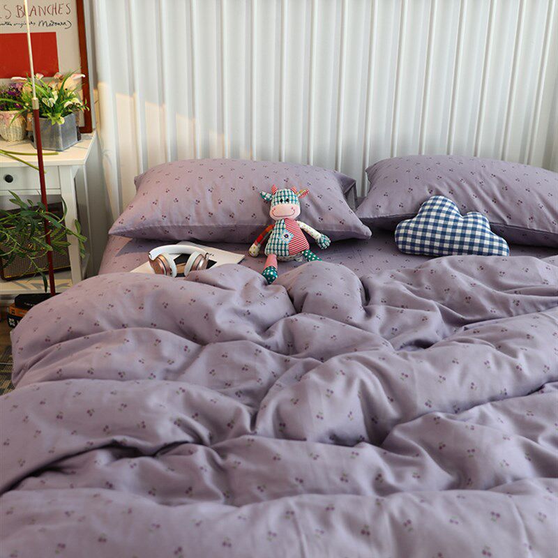 韩版清新a浅紫色A类双层纱全棉纯棉四件式床单被套床笠学生三件套