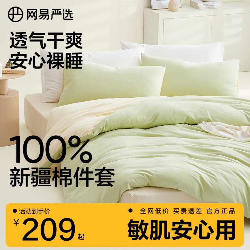 网易严选床上四件套纯棉全棉A类床单三件套被套床笠四季床品