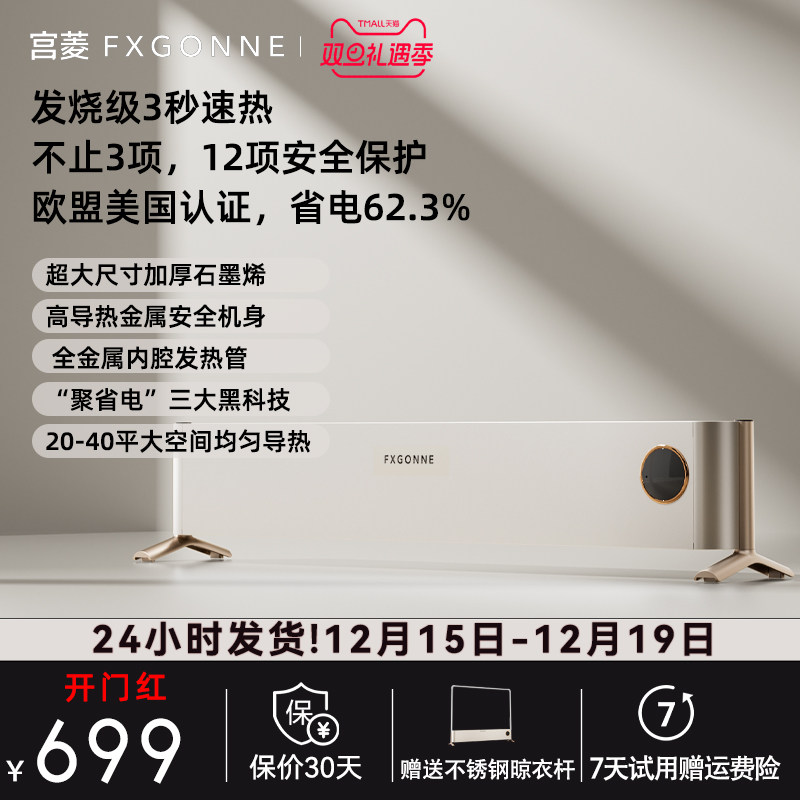 宫菱踢脚线取暖器暖气石墨烯加热大面积家用节能暖风机客厅电暧器