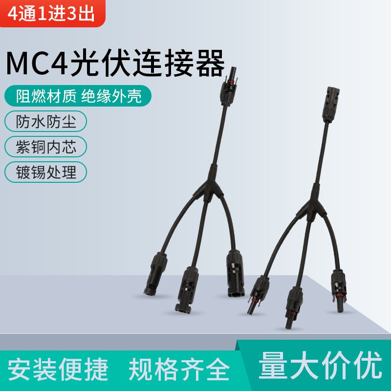 推荐理由:太阳能Y型四通光伏连接器MC4电池板组件一分插头三并联器转接头