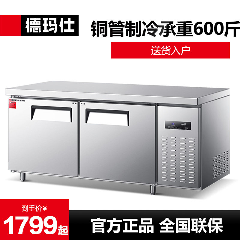 德玛仕商用工作台冰柜保鲜操作台冰柜卧式奶茶店水吧台厨房操作台