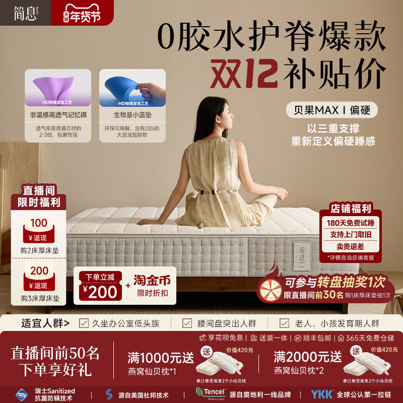 【双十二】简息贝果Max可拆洗床垫0胶水四叶草独立袋弹簧家用床垫