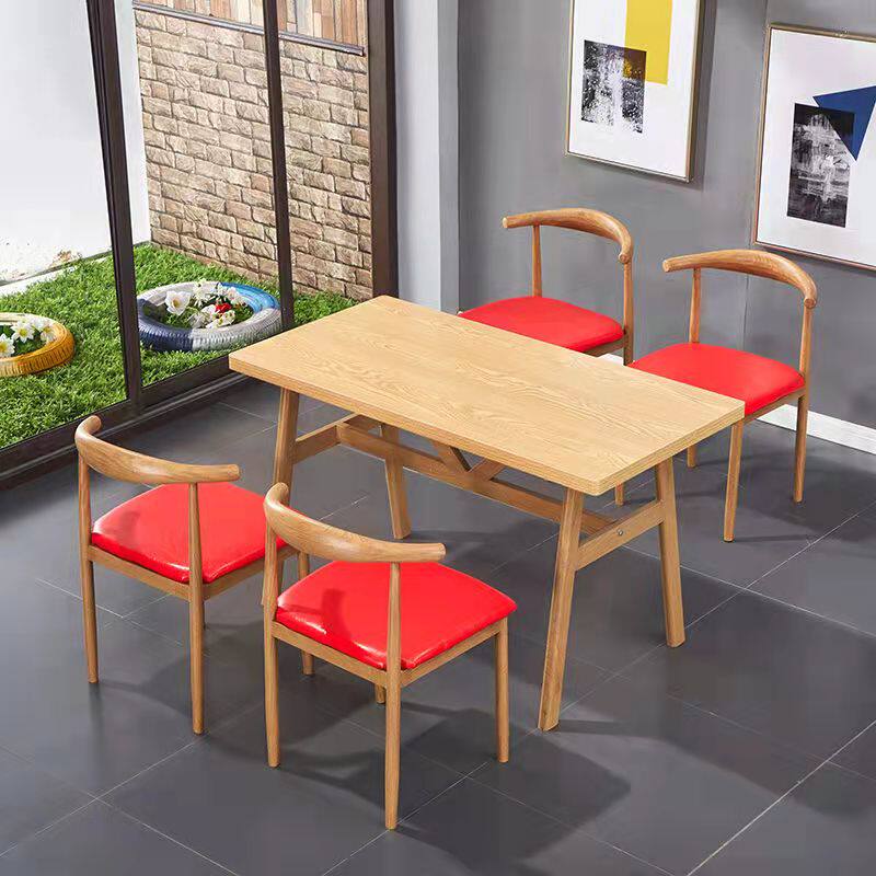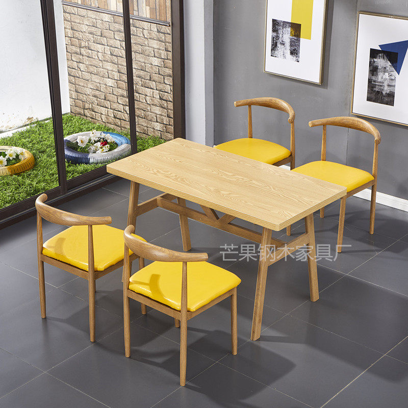 商用快餐桌椅组合铁艺牛角椅餐饮店食堂奶茶烧烤面馆长方形餐桌椅