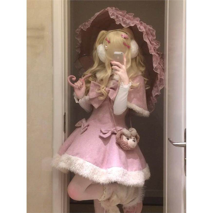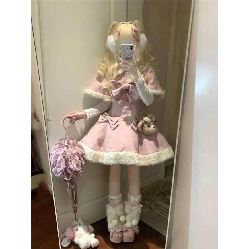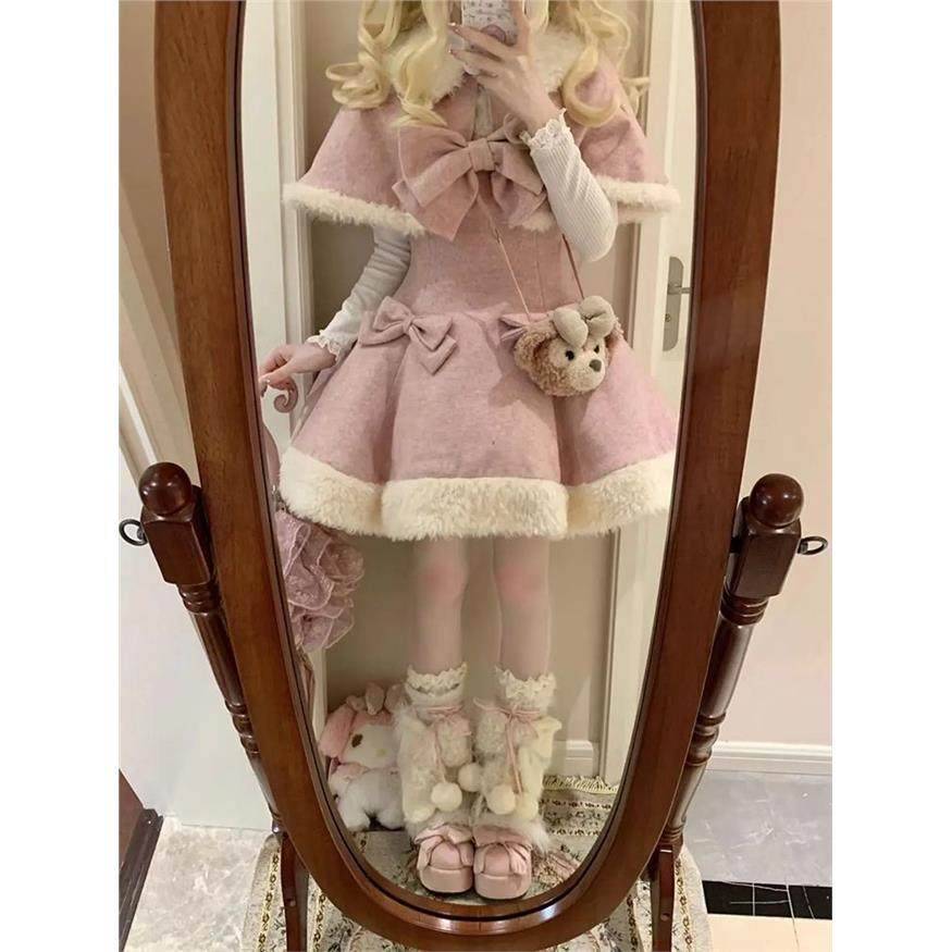洛丽塔二次元秋冬日系lolita设计斗篷外套气质公主蓬蓬连衣裙套装
