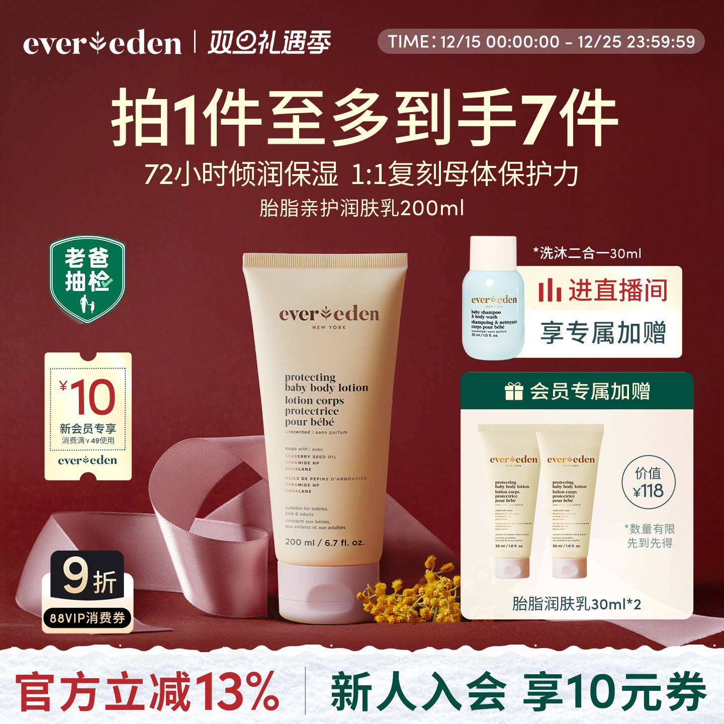 Evereden安唯伊新生儿宝宝秋冬滋润超保湿胎脂身体乳润肤乳200ml