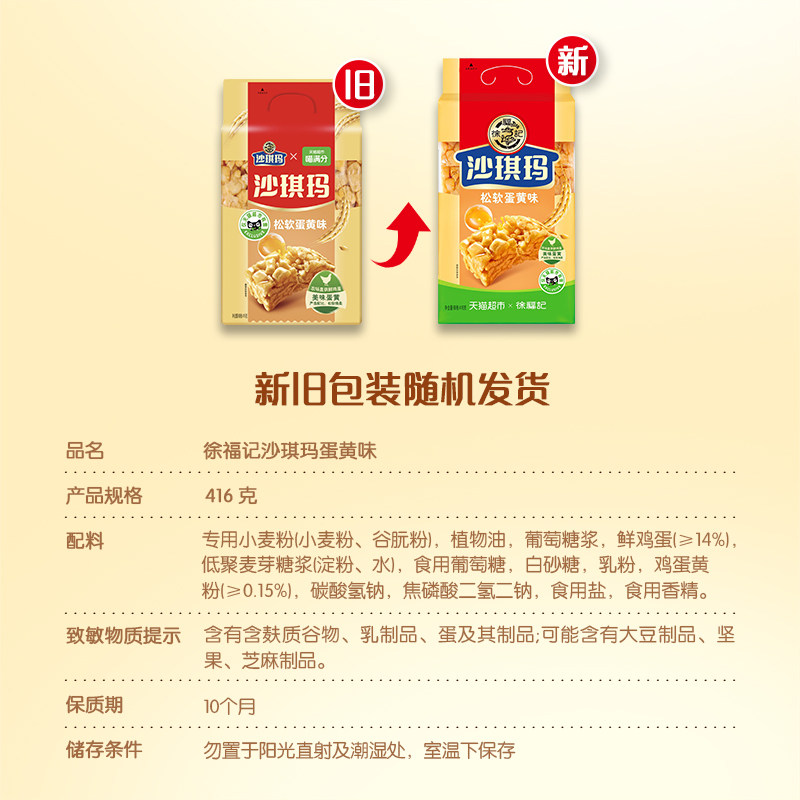 【下拉领优惠】徐福记沙琪玛松软蛋黄味416gx4包营养小吃下午茶
