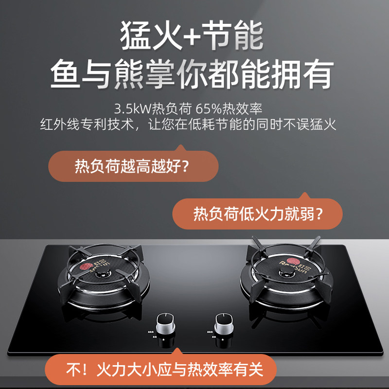 推荐理由:红日红外线燃气灶双灶升级款猛火不黑锅爆炒灶家用台嵌EM318B/BP