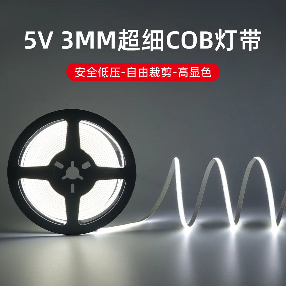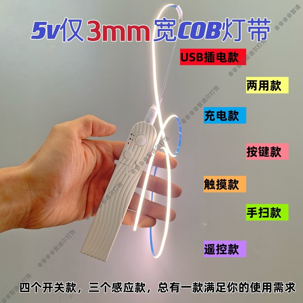 推荐理由:低压5V窄细3毫米充电感应COB灯带插电遥控线性发光灯条无频闪自粘