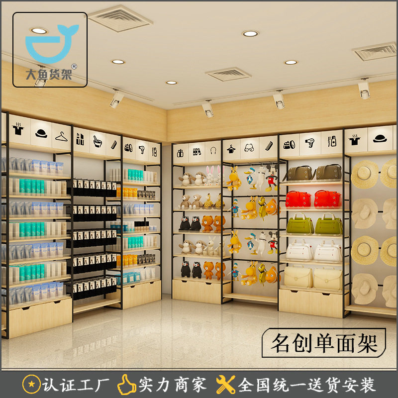 精品店多层超市货架展示架母婴店文具宠物店货架钢木组合单面货柜