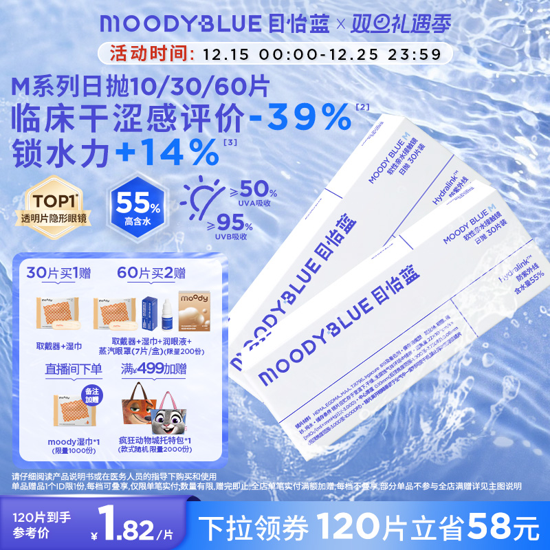 moody隐形眼镜日抛M系列透明片近视眼镜10/30/60片moodyblue