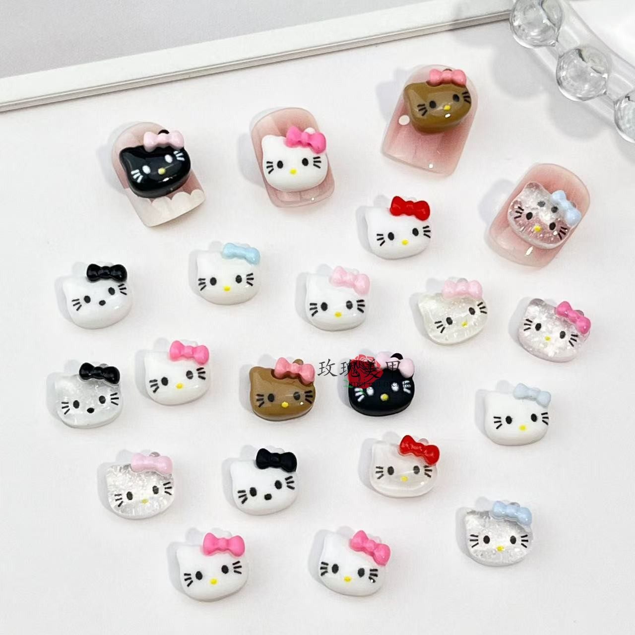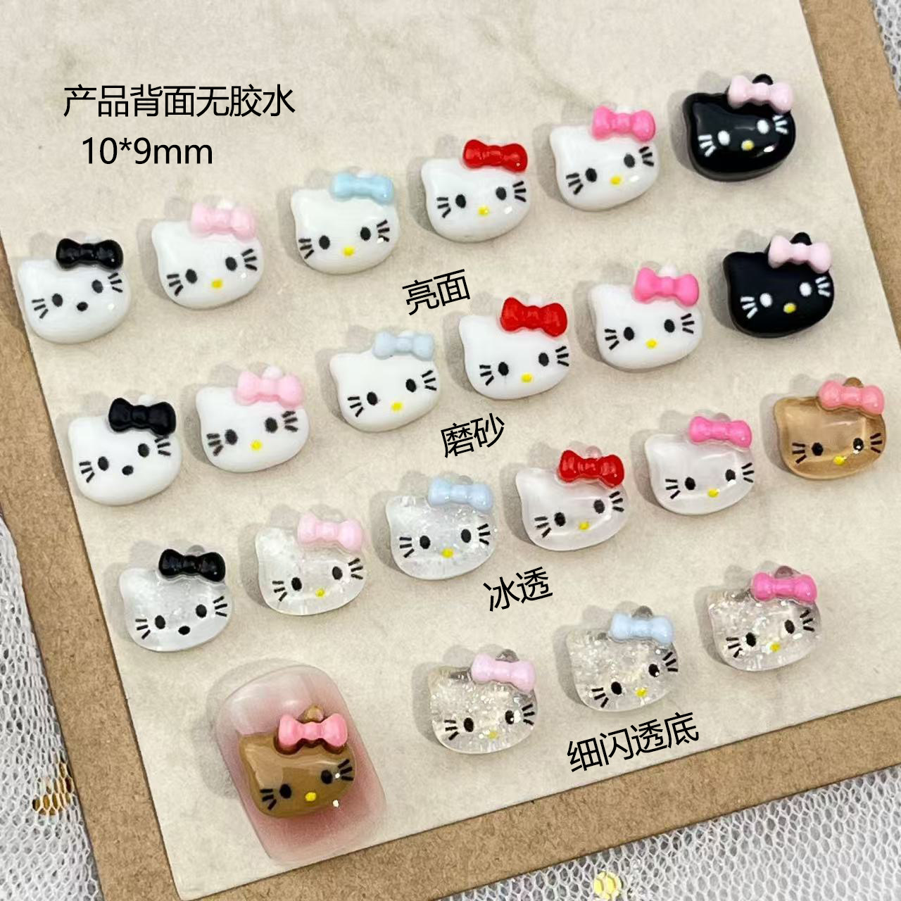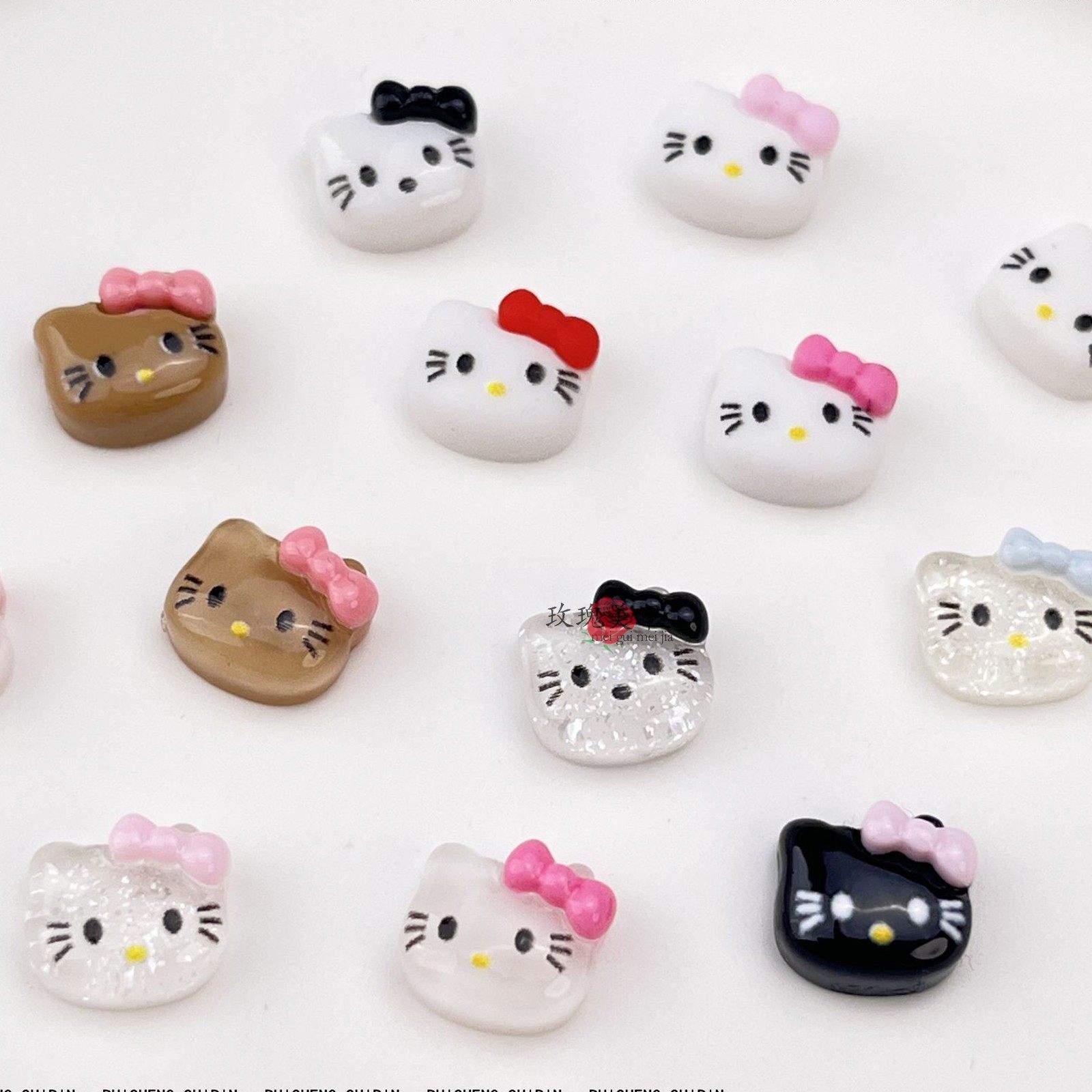 日系KT猫头美甲饰品指甲贴片儿童穿戴甲甲片装饰钻饰耳钉发卡材料