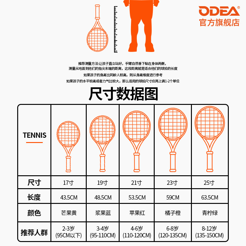 推荐理由:ODEA欧帝尔儿童网球拍小学生幼少儿青少年全年龄段初学分体训练拍