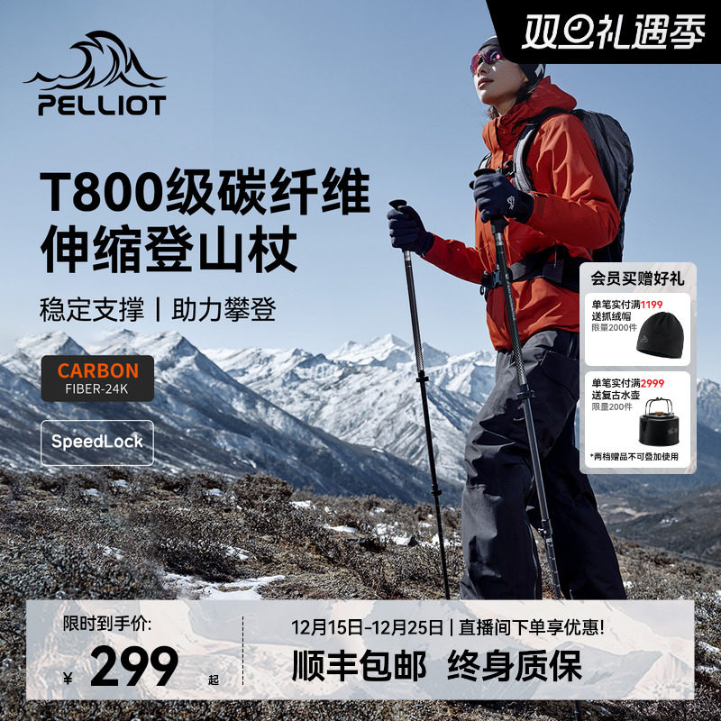 【登峰Pro】伯希和户外登山杖徒步碳纤维超轻伸缩爬山装备手杖