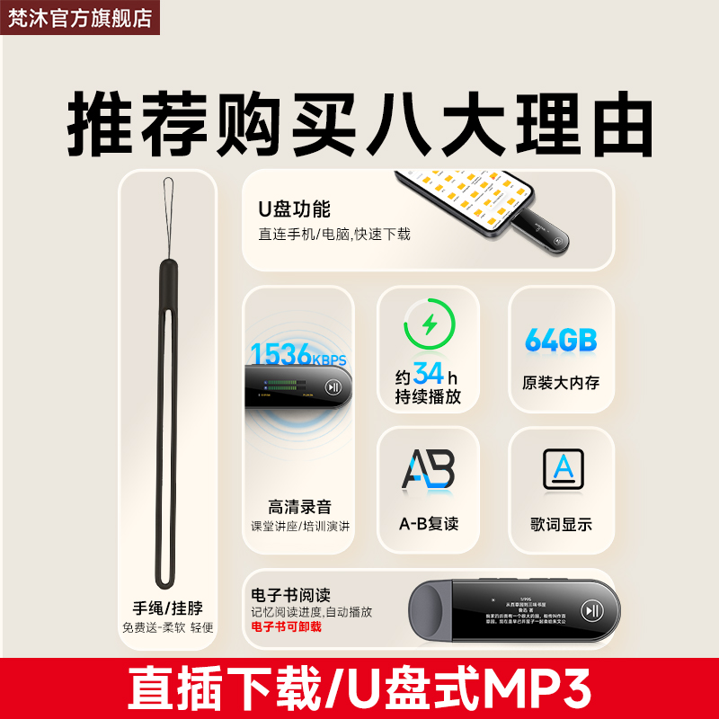 推荐理由:蓝牙5.0 送硅胶绳 是U盘是MP3