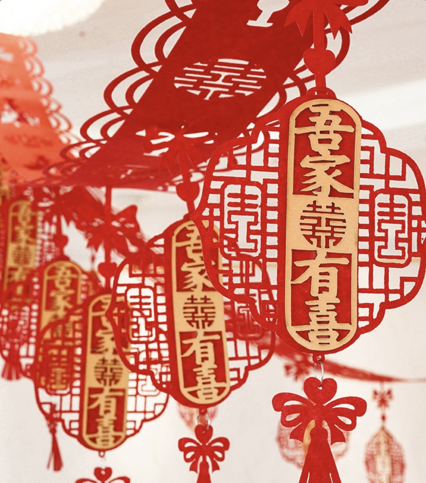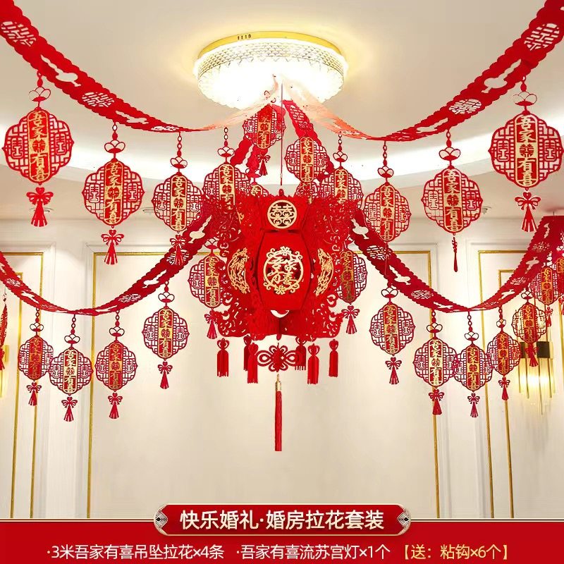 拉花结婚屋顶双面贴金植绒布新款结婚婚房布置装饰天花板卧室客厅