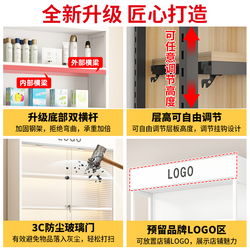 推荐理由:货架展示柜美甲美妆展示架化妆品玻璃门多层置物架美容院陈列柜子