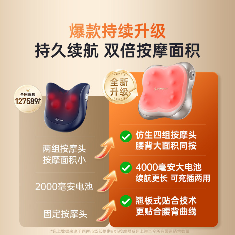 推荐理由:圣诞礼物西屋BX3F腰部按摩仪背部按摩器全自动揉捏全身按摩靠垫