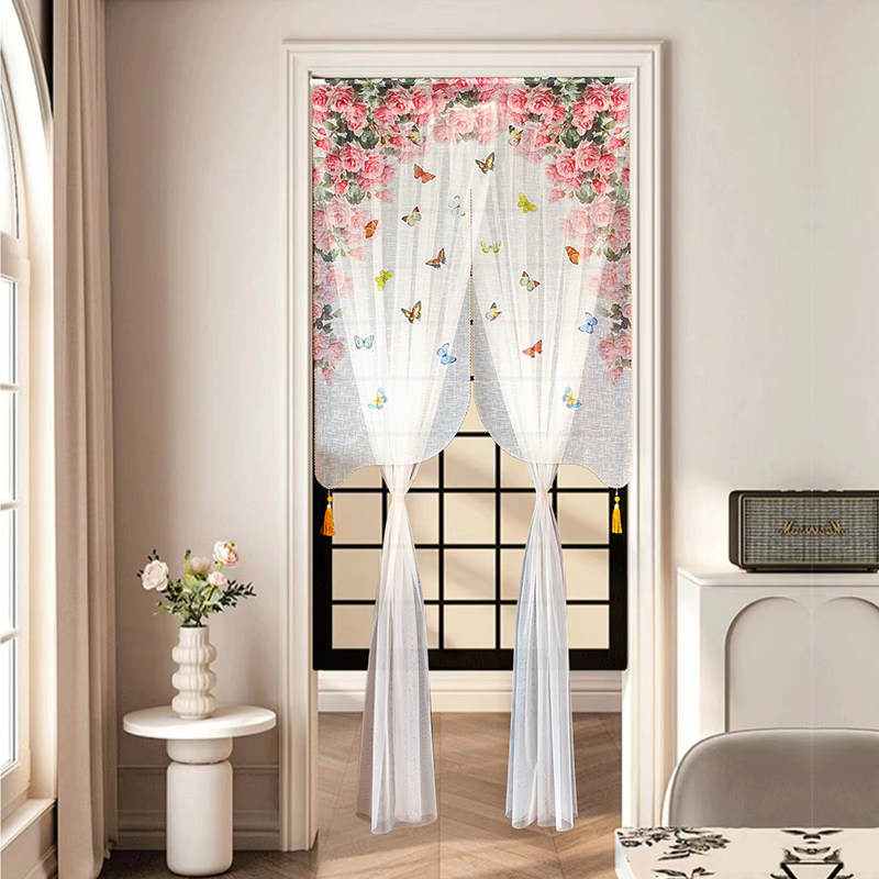 门帘田园风装饰隔断帘法式家用免打孔隐私遮挡帘新款高档帘子布帘