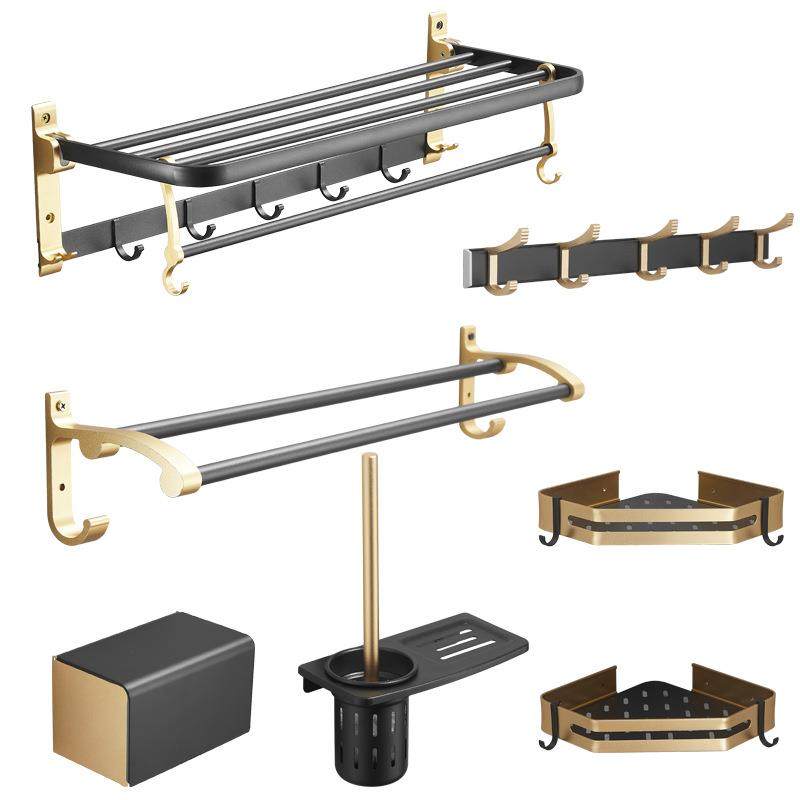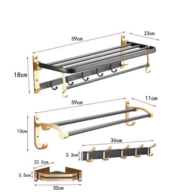 洁西特卫生间五金挂件浴室收纳毛巾杆黑金六件套装太空铝卫浴套件