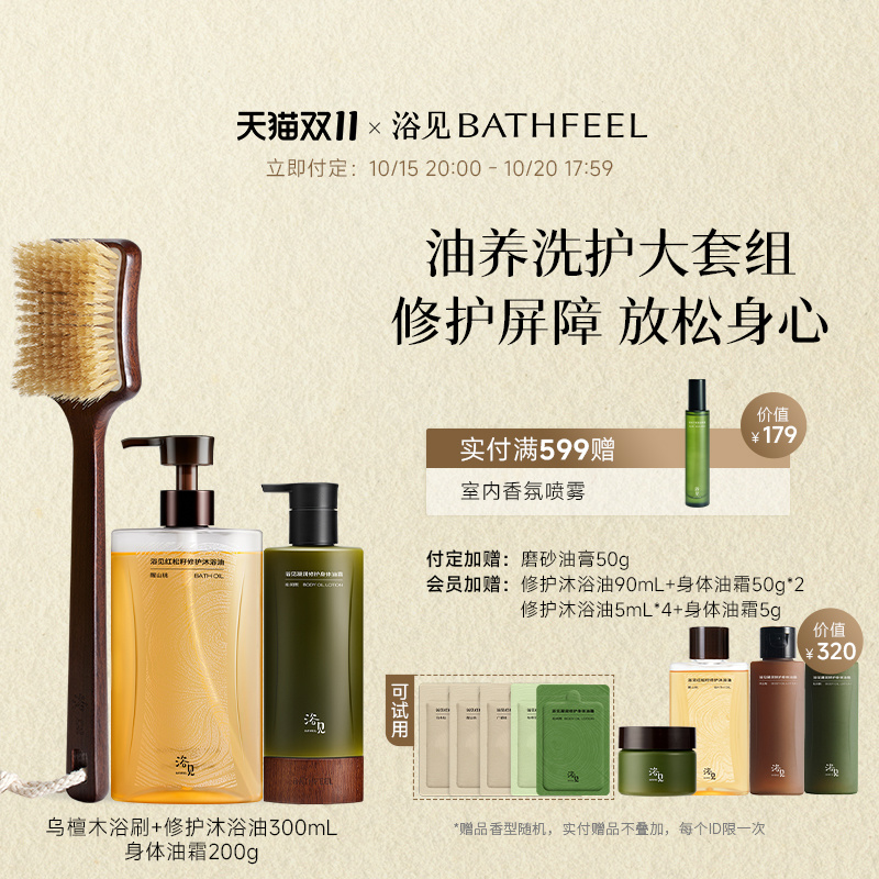 【双十一立即付定】浴见红松籽修护沐浴油+身体油霜+乌檀木浴刷