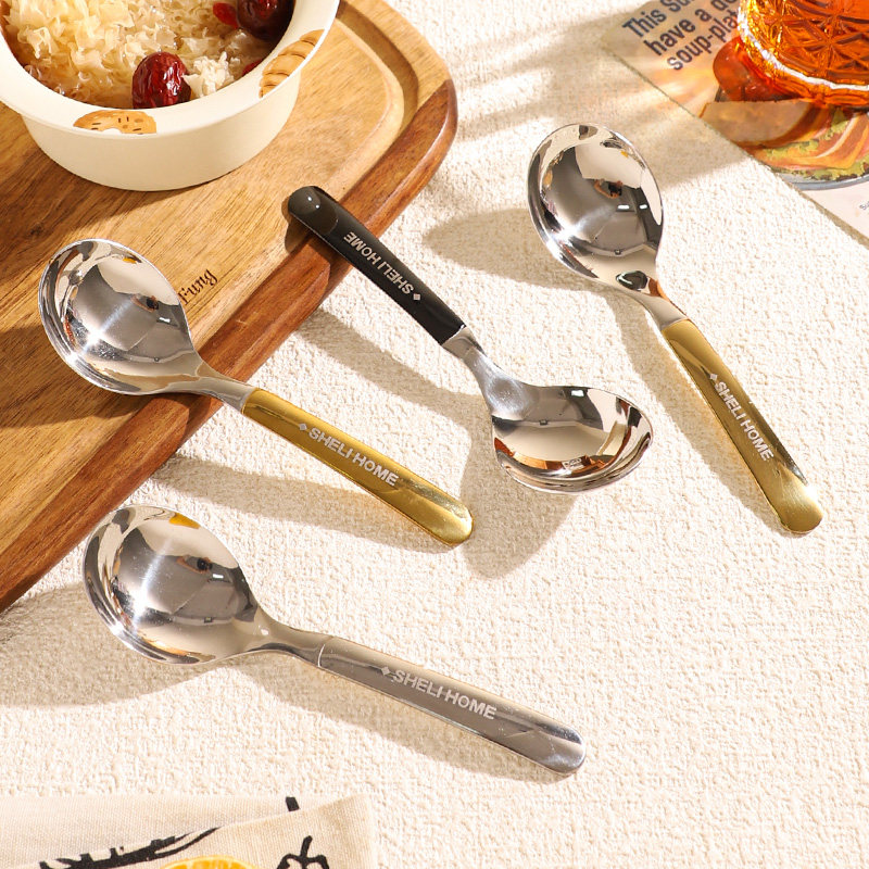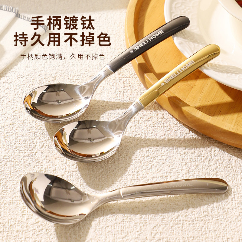 舍里不锈钢勺子高颜值吃饭勺家用加深汤匙调羹汤勺西餐勺喝粥勺子
